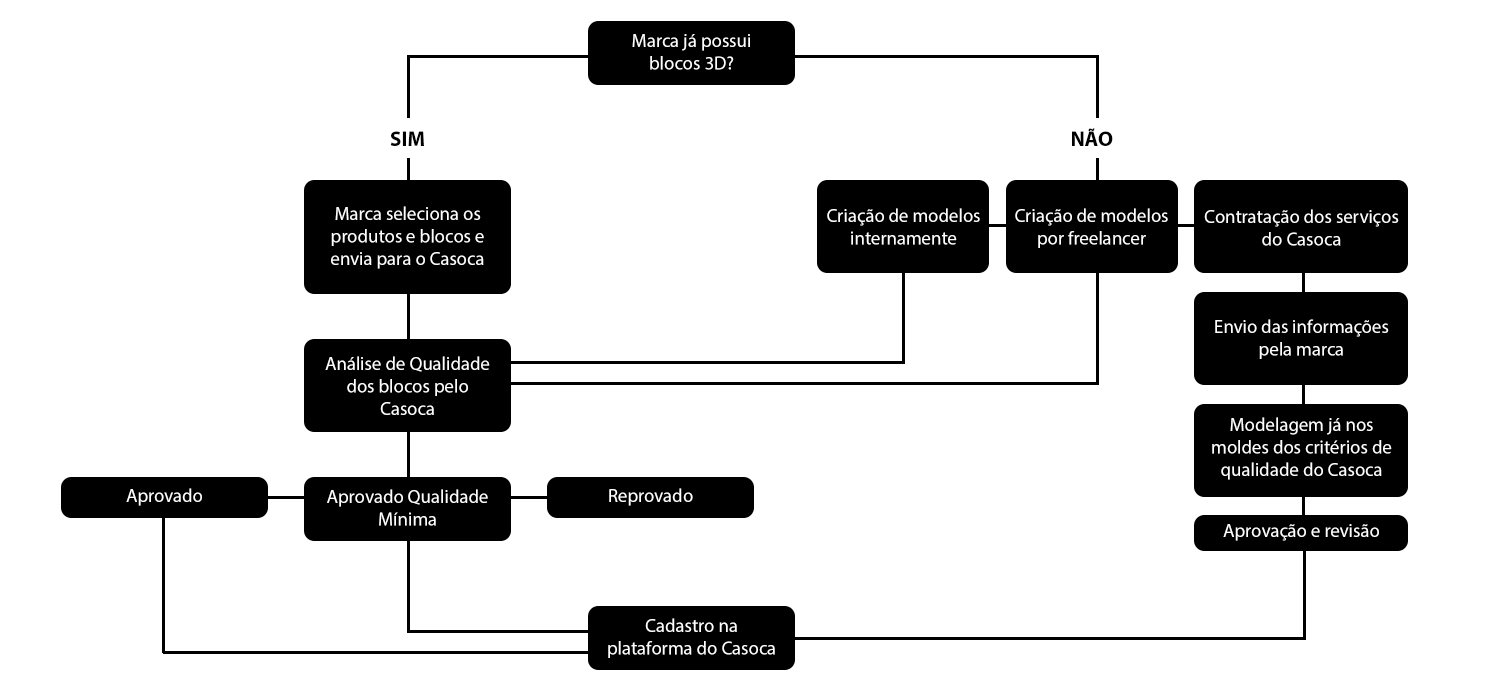 Este serviço é acionado quando a marca: a) não possui os blocos 3D, ou b) possui blocos que foram reprovados ou estão classificados como qualidade mínima na análise de padronização por exigirem ajustes.