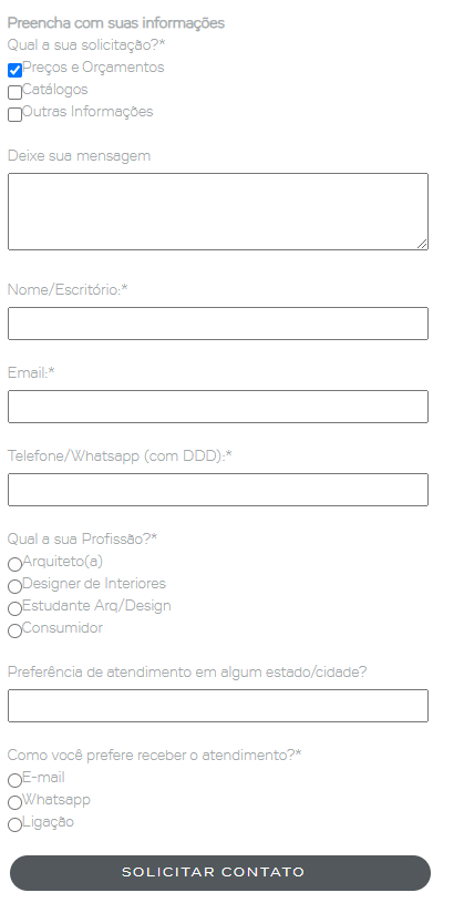 Em seguida, ele irá preencher o formulário abaixo com suas informações de contato e descrições de suas dúvidas.